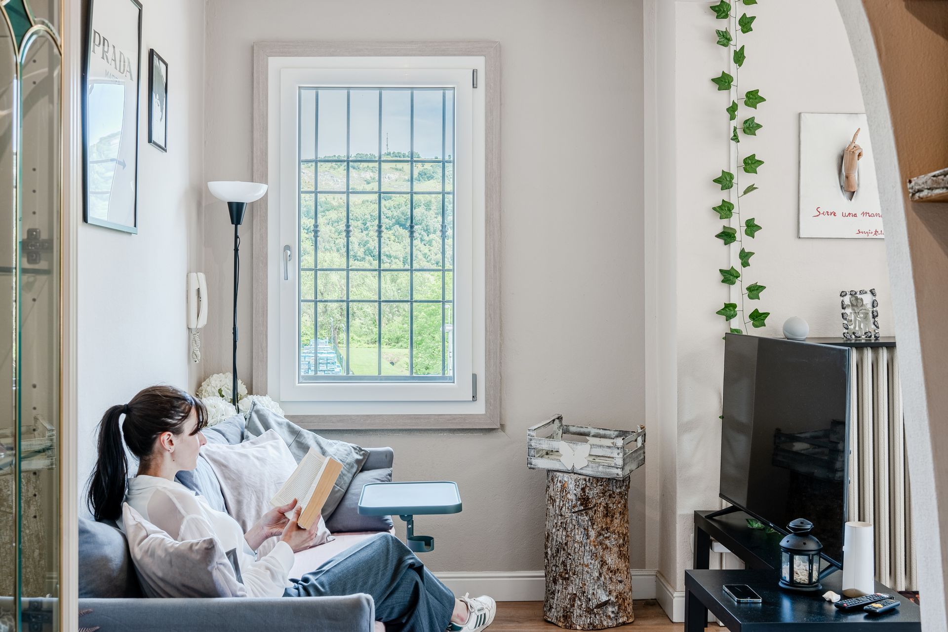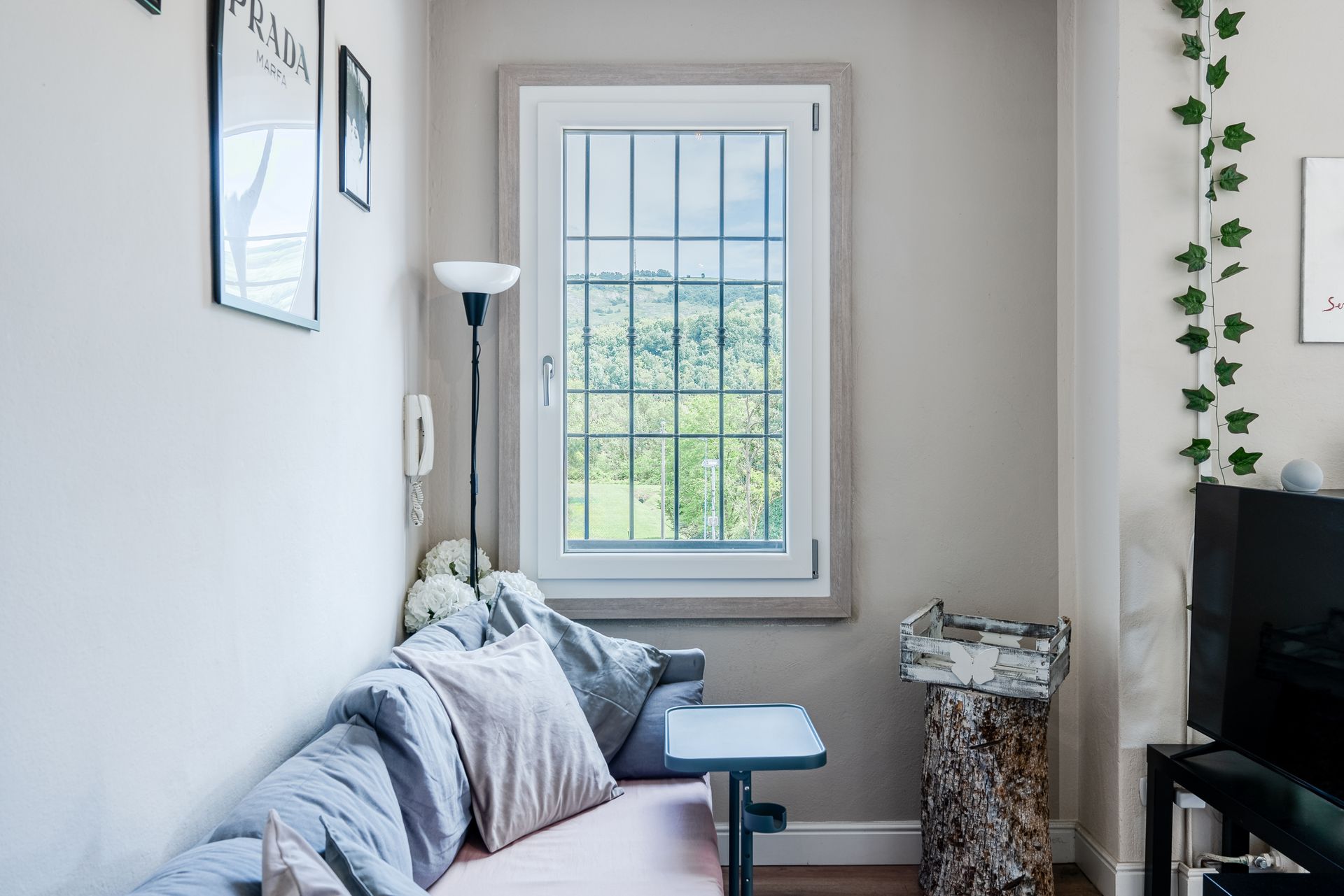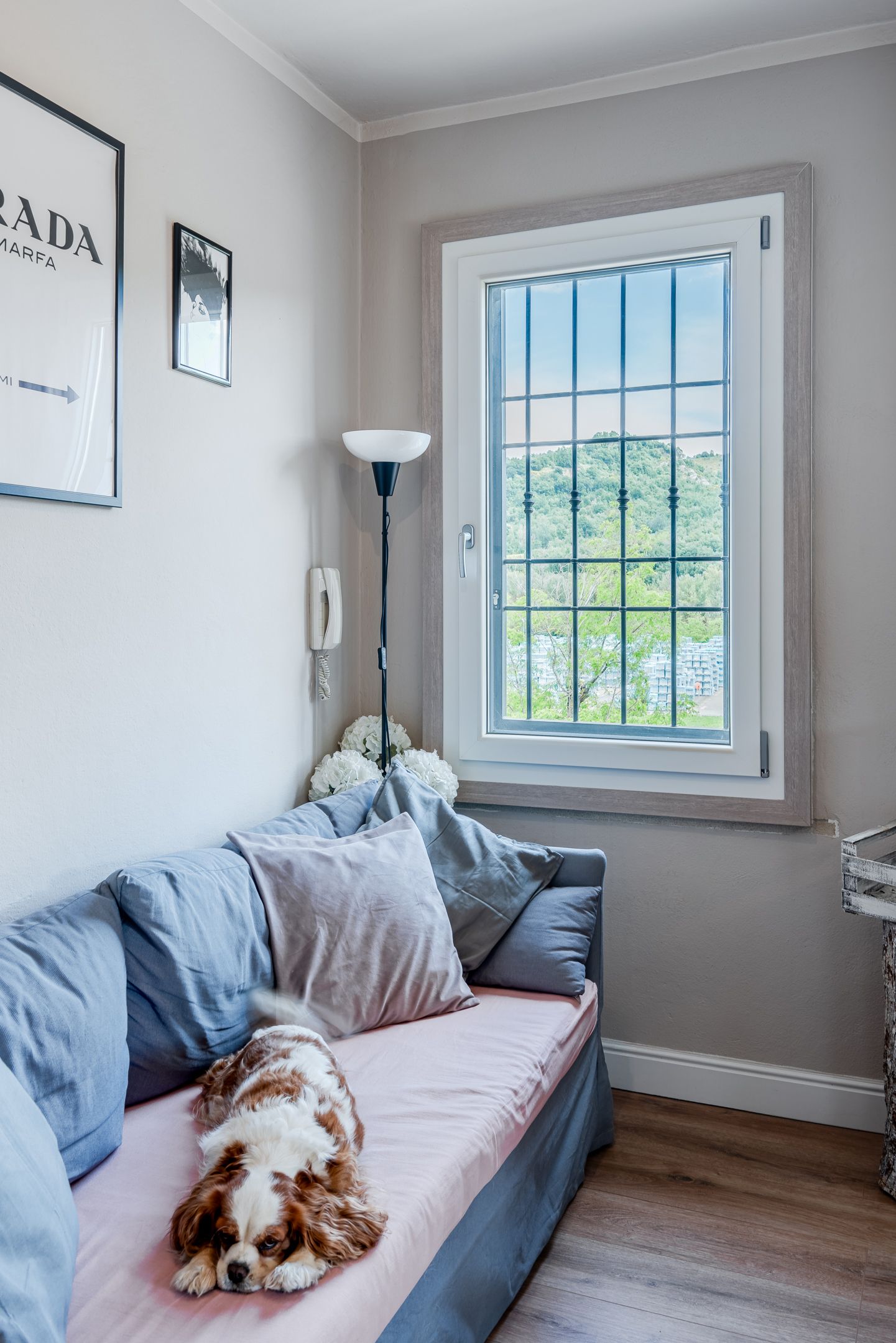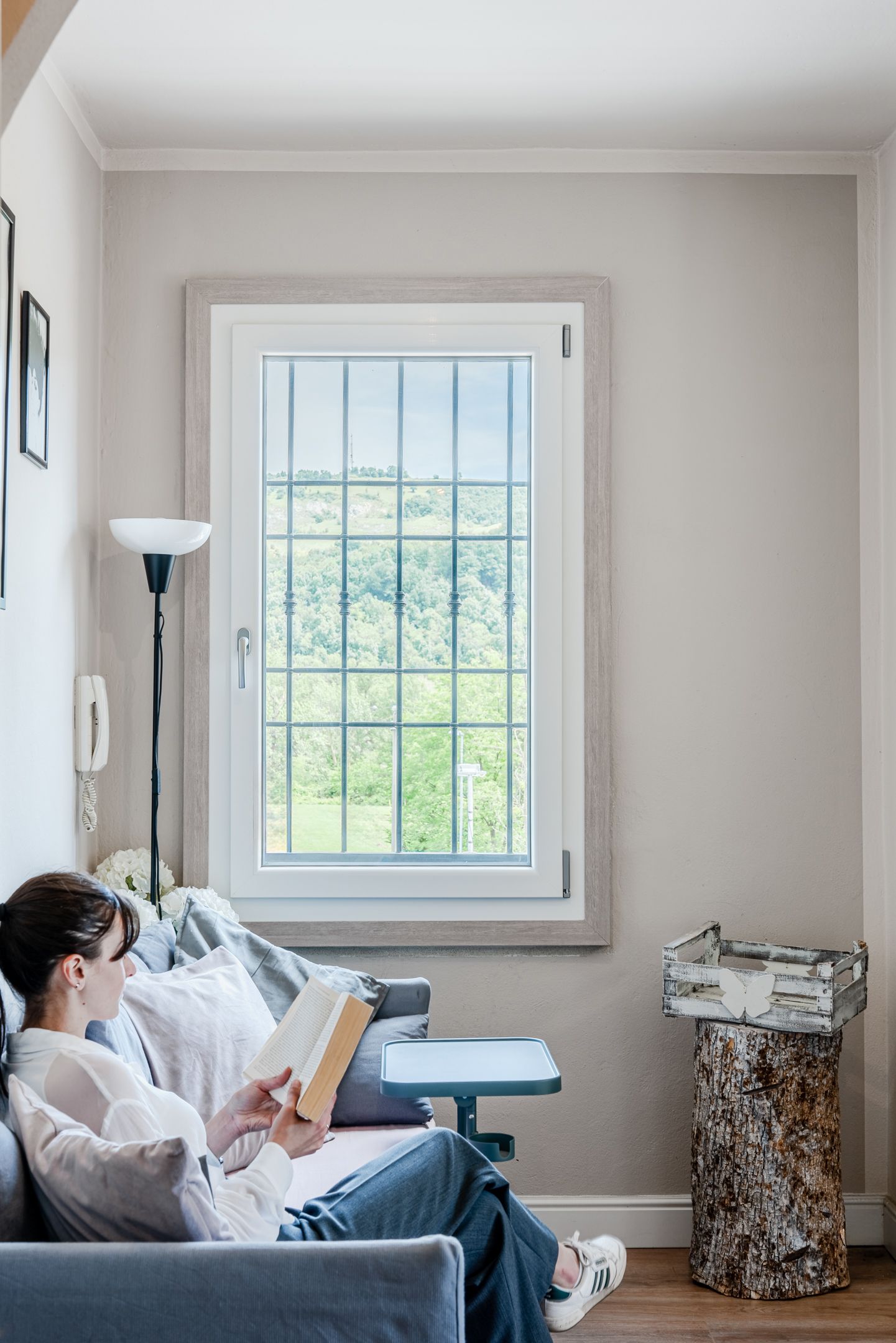 Per poter soddisfare le richieste della cliente, anche in questo caso, abbiamo consigliato, ai fini energetici, un serramento con doppio vetro a basso emissivo con canalina calda e tripla guarnizione; per quanto riguarda invece il design, per contenere i costi, abbiamo consigliato un serramento bianco standard abbinato però a coprifili interni in effetto shabby chic che rispecchiassero i gusti della ragazza.